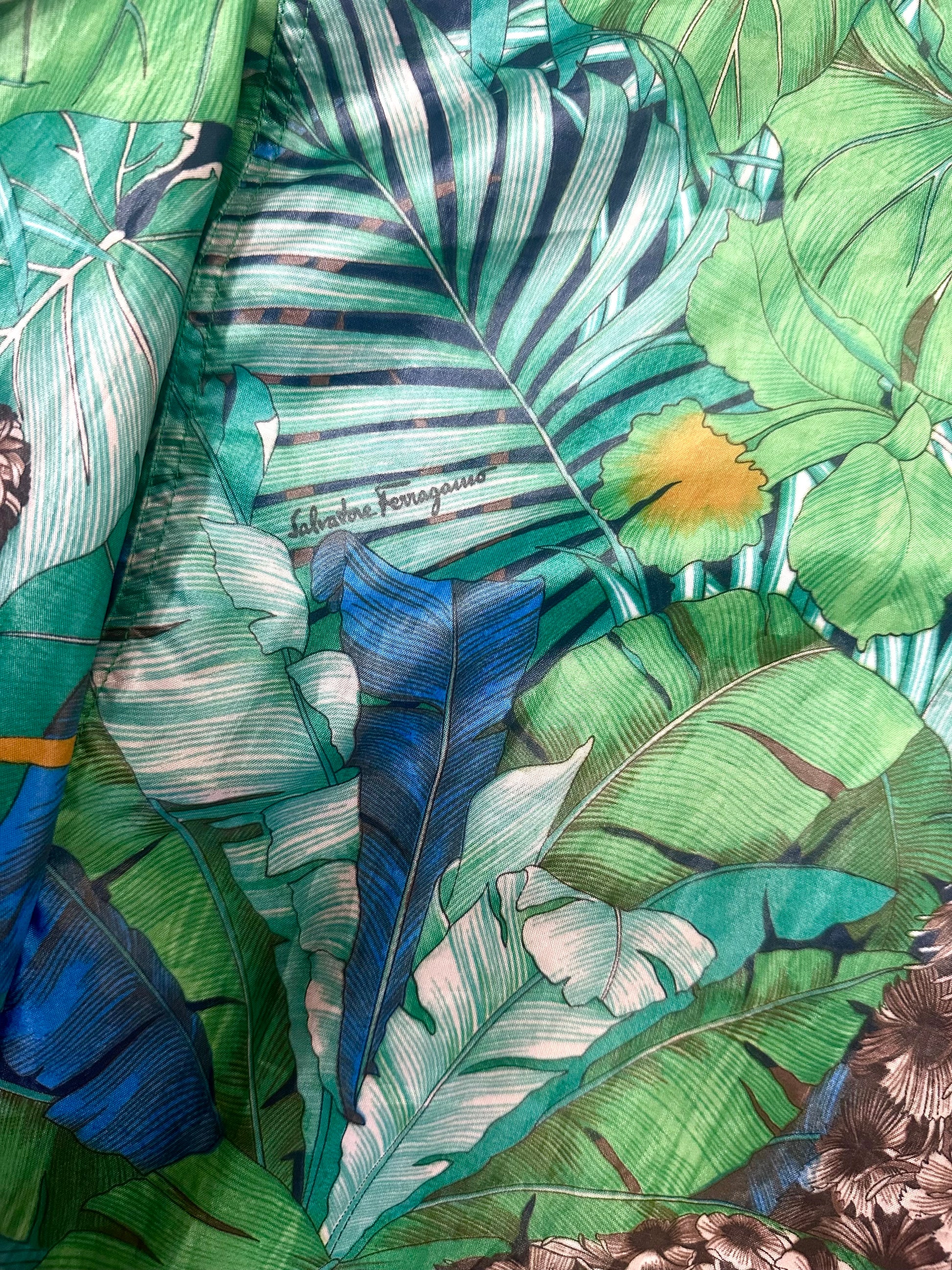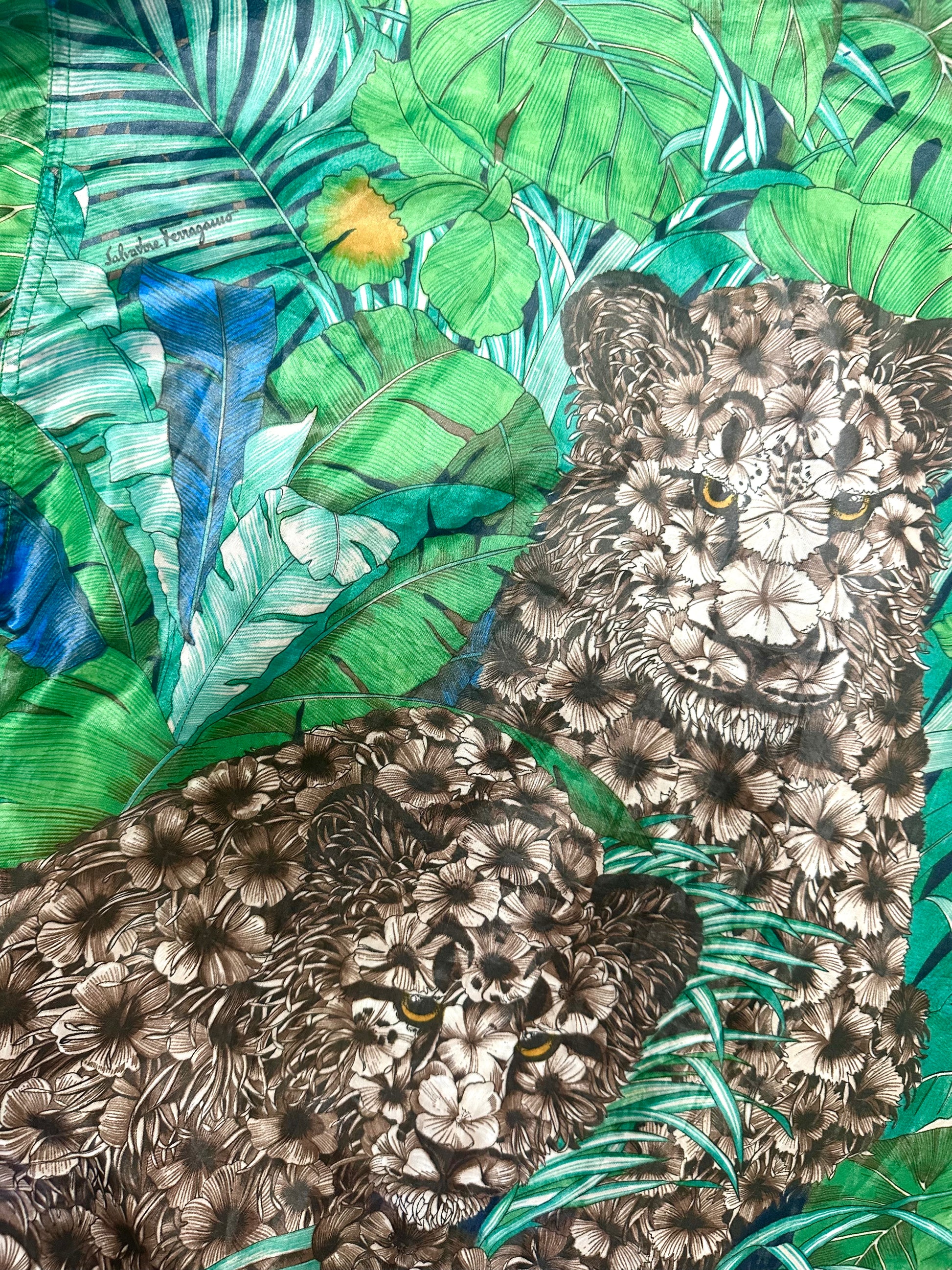 - Design: Stampa all-over con motivo giungla lussureggiante e dettagli di leopardi stilizzati.