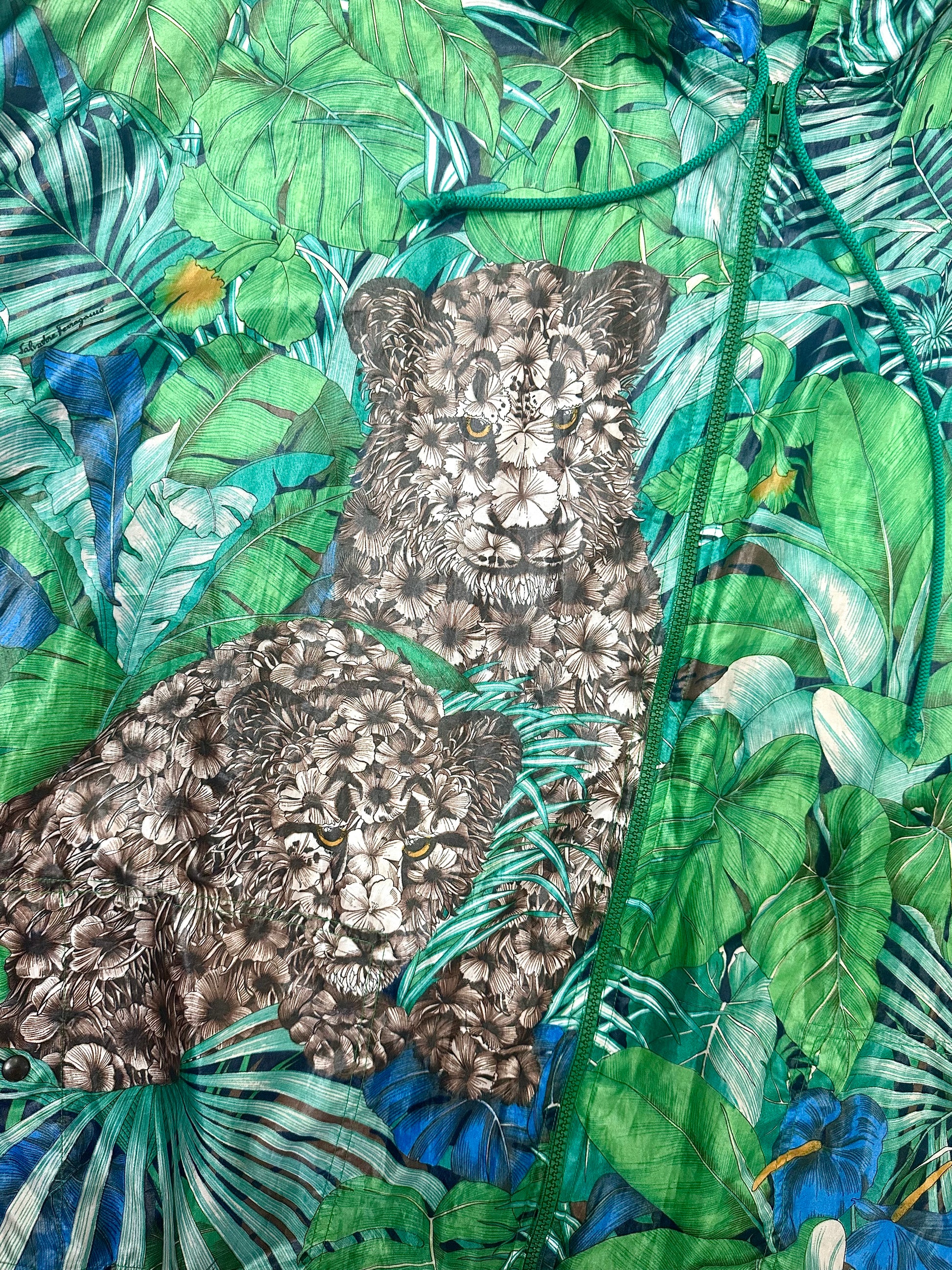 Giacca a Vento Salvatore Ferragamo Stampa Giungla con Leopardi (Taglia M)